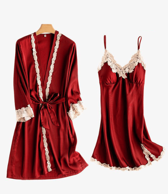 Soft Comfortable Ice Silk Lace Pajamas 2pcs/ 5pcs Set👗Cover flab and thin and elongate the body proportion.